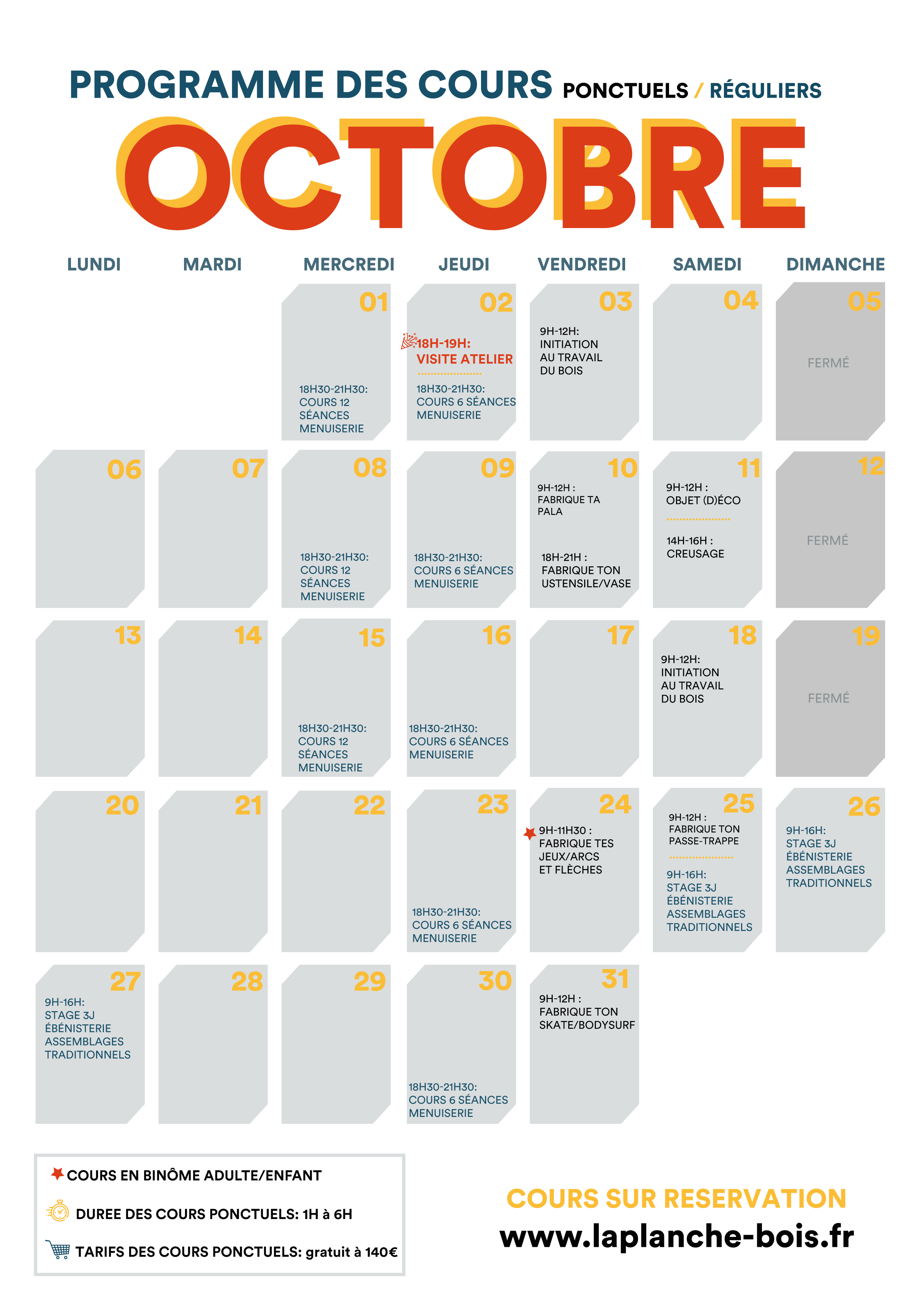 - Cours de menuiserie, ébénisterie, tournage, sculpture,