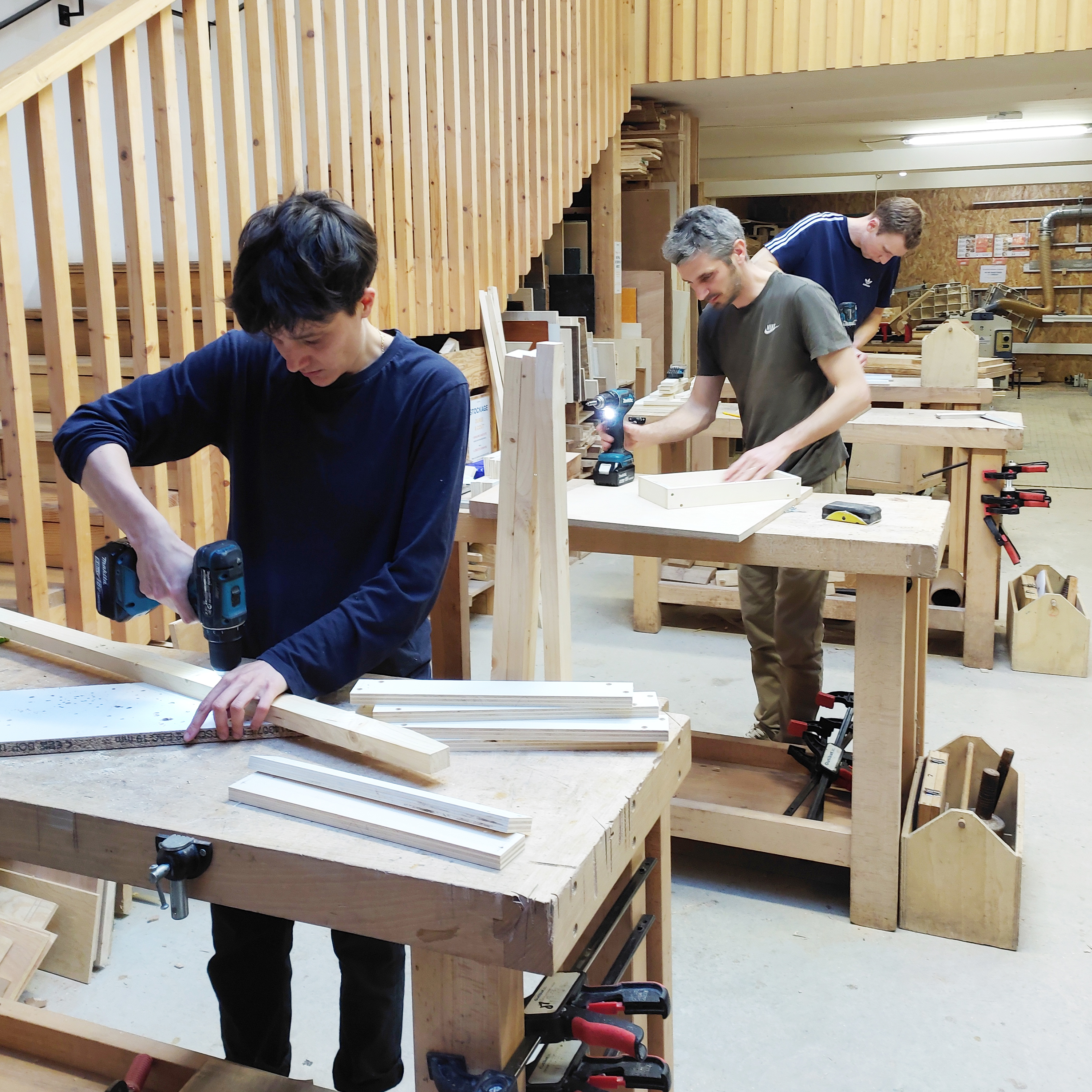 Ces séances vous permettront de vous sensibiliser au travail du bois, de rencontrer la matière en douceur et de poser les bases de la conception d'ouvrages en bois.