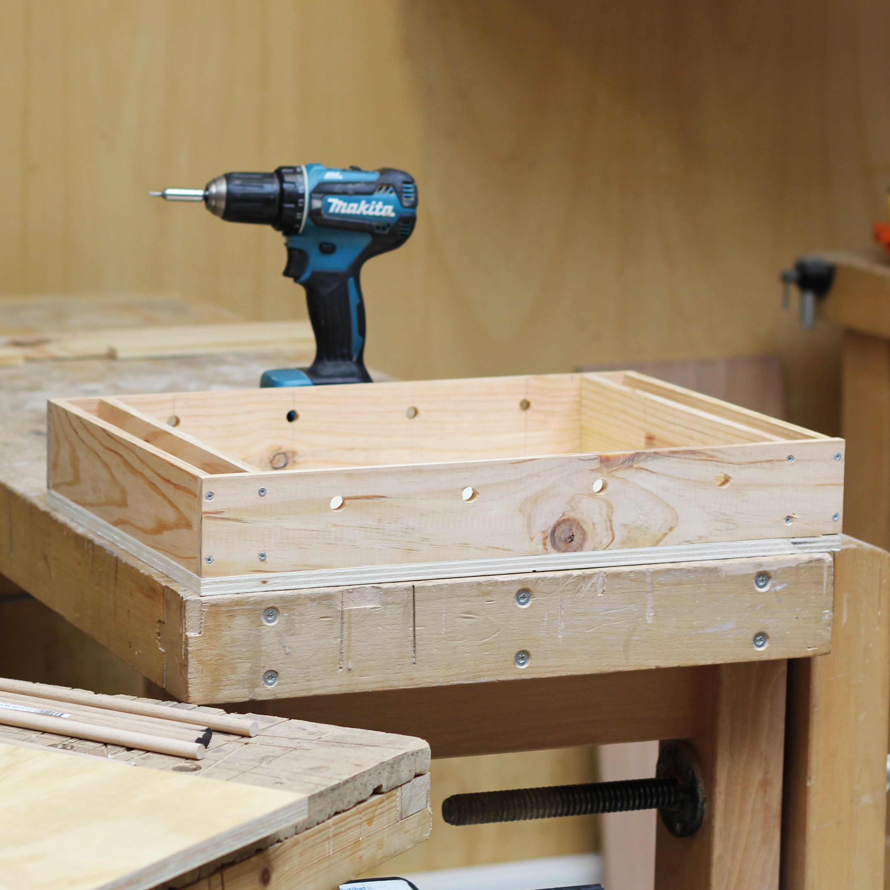 Vous passerez ensuite à l’assemblage de la boîte : traçage, perçage sécurisé et vissage précis.