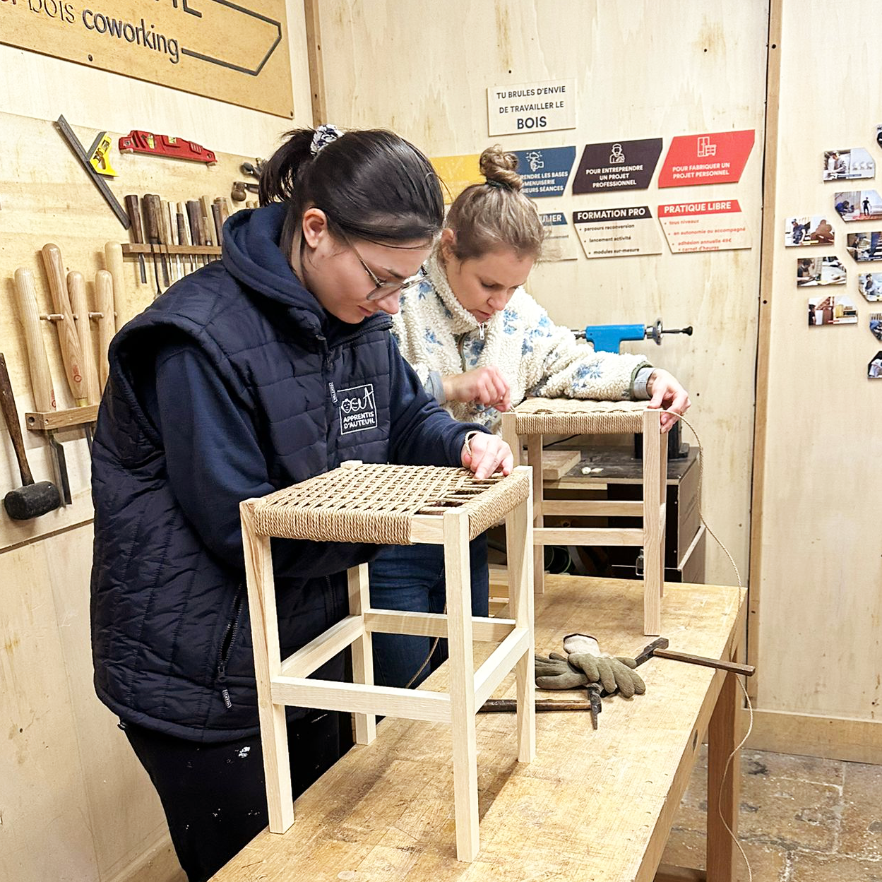 Venez passer une journée complète à l'atelier pour créer votre tabouret tressé avec Yann, tapissier d'ameublement.